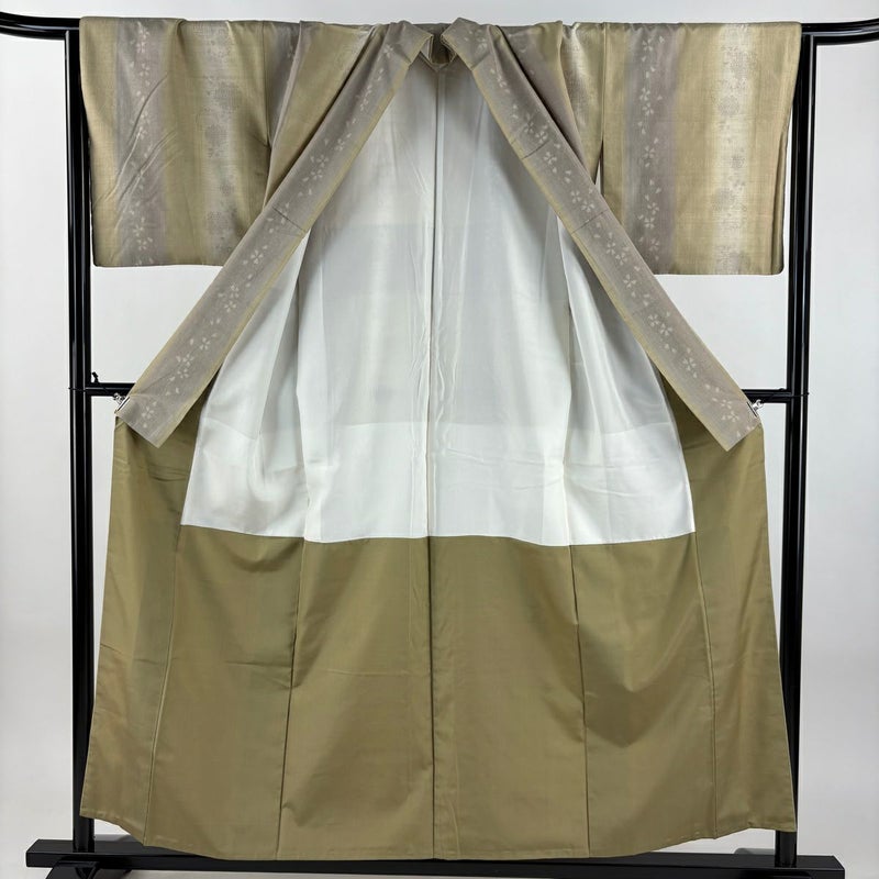 【紬】 白系 ベージュ 秀品 B 約150cm~約159cm 裄丈65cm (M)size 袖丈46cm以下 4000-7980 二万以下