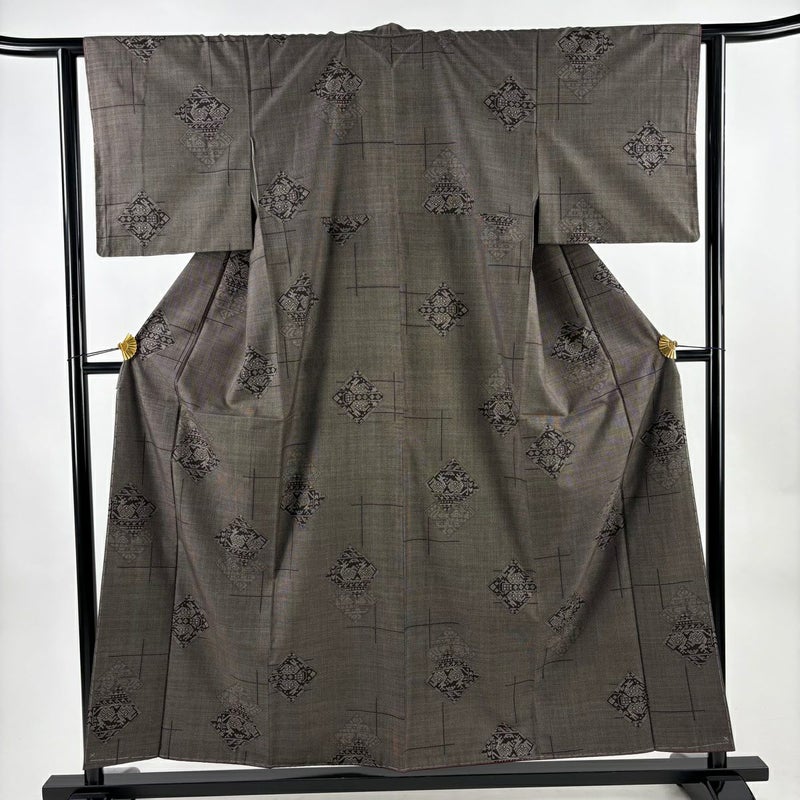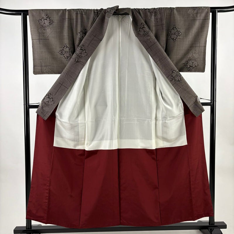 【着物ランク】秀品 【素材】正絹 【身丈】約155.5cm 【裄丈】約62cm 【袖丈】約44.5cm 【袖幅】約32.5cm 【前幅】約24.5cm 【後幅】約29.5cm 【サイズ】S 【着物仕立て】袷 【着用時期】10~5月 【状態ランク】ランクA 【着物着用シーン】気軽なパーティー、観劇、食事会、正月、気軽なお茶会、街着