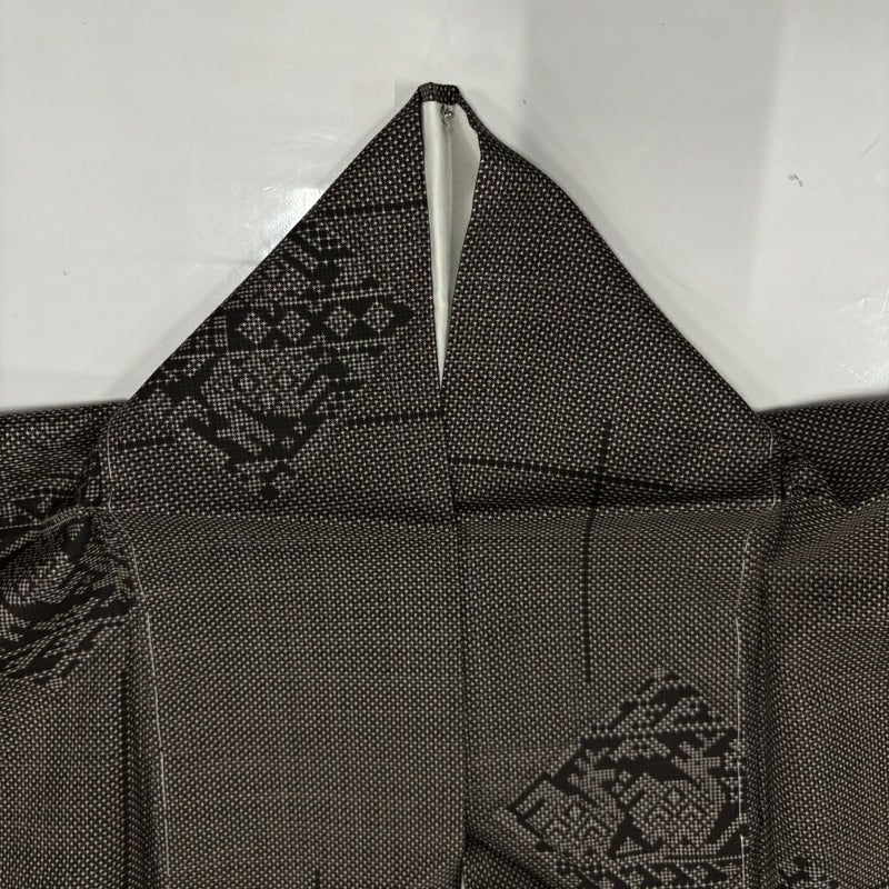 【紬】 茶系 焦茶色 秀品 A 約150cm~約159cm 裄丈62cm以下 (S)size 袖丈46cm以下 7990-9980 美品 二万以下