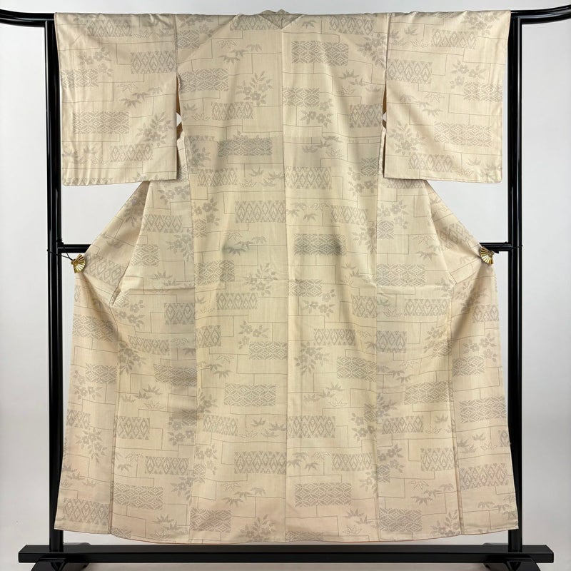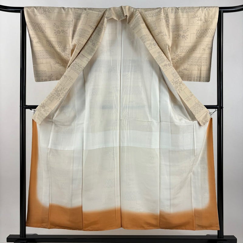 【着物ランク】優品 【素材】正絹 【身丈】約154cm 【裄丈】約64cm 【袖丈】約50cm 【袖幅】約33.5cm 【前幅】約24cm 【後幅】約27cm 【サイズ】M 【着物仕立て】袷 【着用時期】10~5月 【状態ランク】ランクA 【着物着用シーン】気軽なパーティー、観劇、食事会、正月、気軽なお茶会、街着