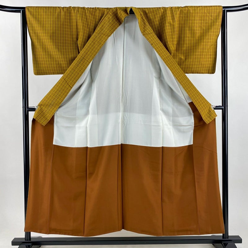 【紬】 黄色系 黄土色 名品 B 約150cm~約159cm 裄丈63cm-64cm (M)size 袖丈46cm以下 9990-29990 二万以下