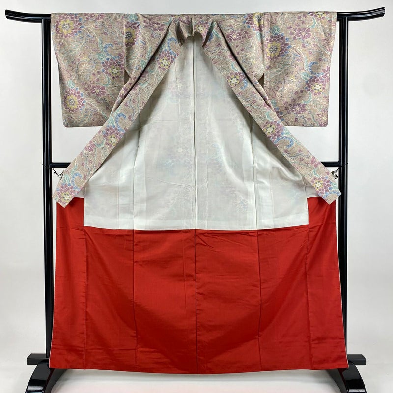 【着物ランク】秀品 【素材】正絹 【身丈】約154.5cm 【裄丈】約62.5cm 【袖丈】約51cm 【袖幅】約32cm 【前幅】約23cm 【後幅】約28.5cm 【サイズ】S 【着物仕立て】袷 【着用時期】10~5月 【状態ランク】ランクB 【着物着用シーン】気軽なパーティー、観劇、食事会、正月、気軽なお茶会、街着