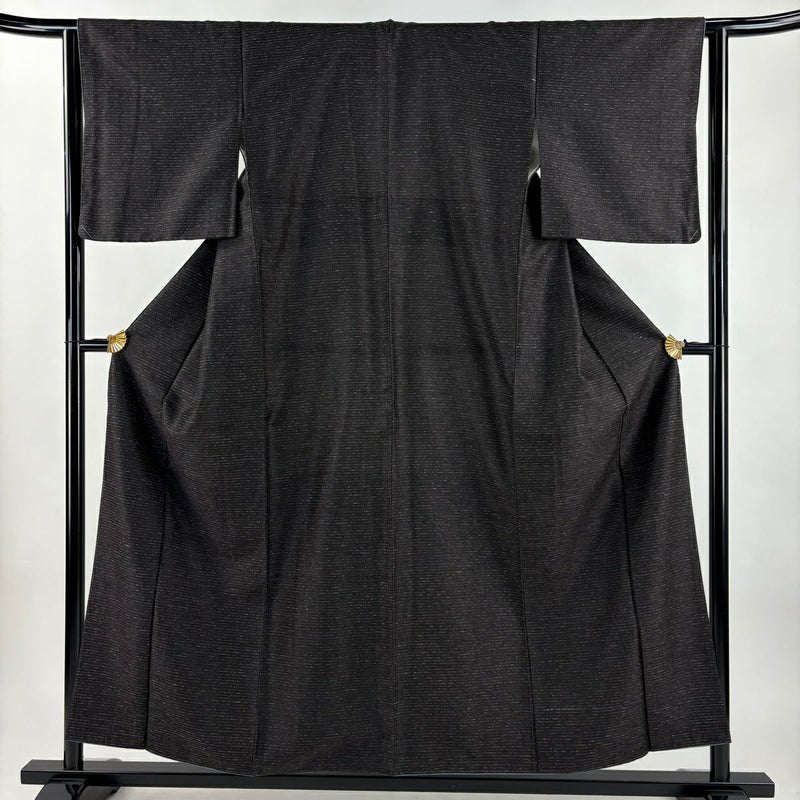 【紬】 黒系 墨色 秀品 A 約150cm~約159cm 裄丈63cm-64cm (M)size 袖丈47cm 7990-9980 美品 二万以下