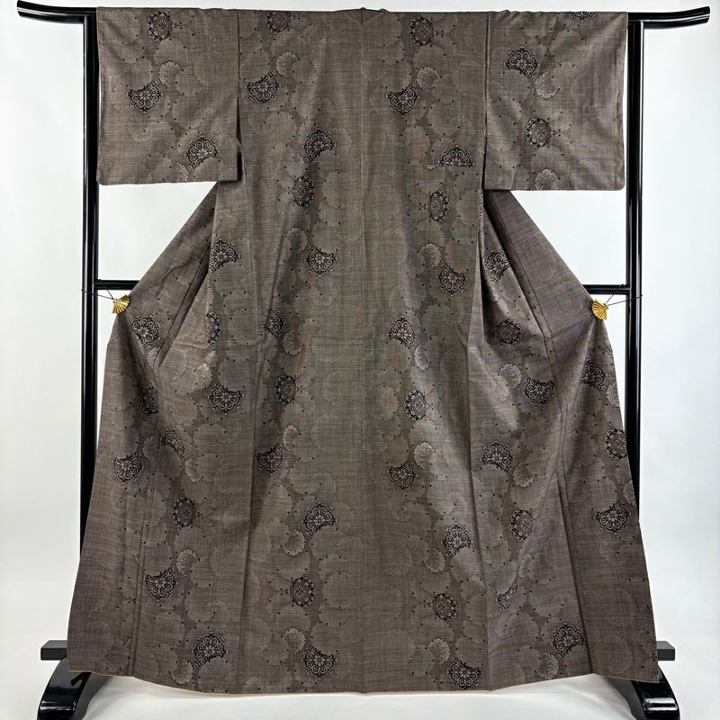 【紬】 茶系 焦茶色 秀品 A 約160cm~約169cm 裄丈63cm-64cm (S)size 袖丈46cm以下 7990-9980 美品 二万以下