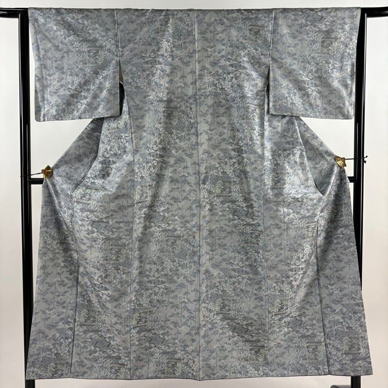 【着物ランク】秀品 【素材】正絹 【身丈】約152cm 【裄丈】約63.5cm 【袖丈】約45.5cm 【袖幅】約33.5cm 【前幅】約24.5cm 【後幅】約28.5cm 【サイズ】S 【着物仕立て】袷 【着用時期】10~5月 【状態ランク】ランクC 【着物着用シーン】気軽なパーティー、観劇、食事会、正月、気軽なお茶会、街着