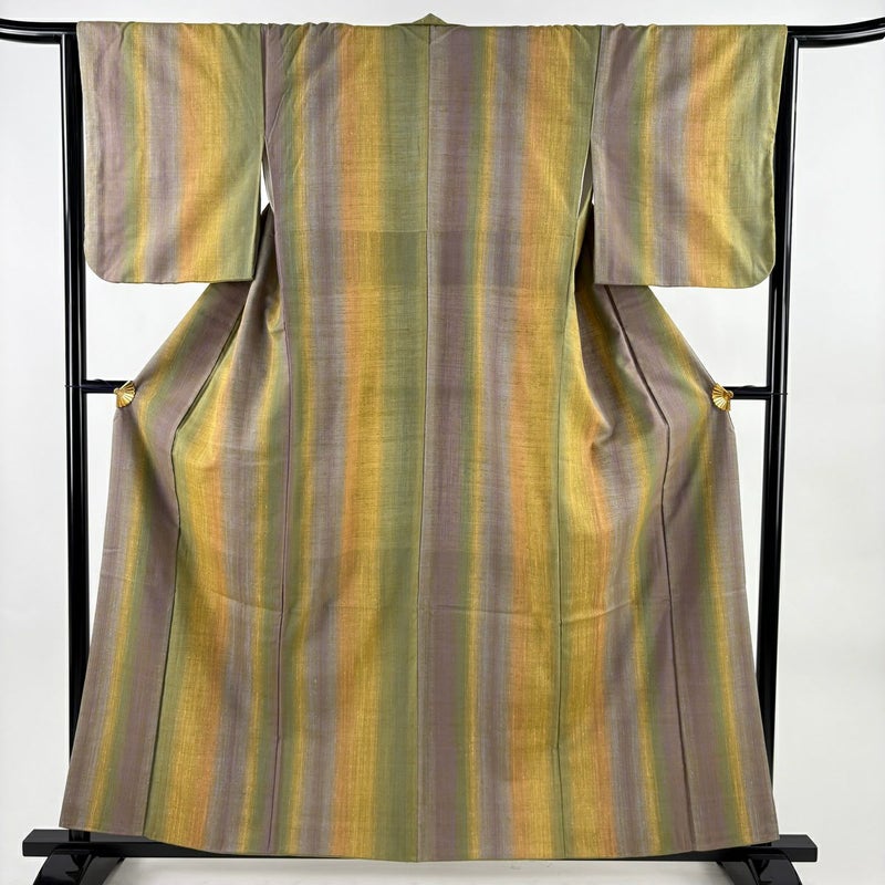 普段着やおしゃれ着として人気の紬でございます。 元々は日常着として着用していたので、その土地の風土に合った様々な種類がある素敵な一品です。 両胸にシワがございます。 裏地左脇に汗シミ、胴裏に糸つれがございます。 リユース品としては良い状態で、まだまだご活用頂けると思われます。 ※なお、厳しく商品の状態確認を行っておりますが、記載の汚れ以外にも見落とし箇所がある可能性がある旨ご了承いただけますと幸いです。 沢山の商品の中からご覧いただき誠にありがとうございます。 【PR2】