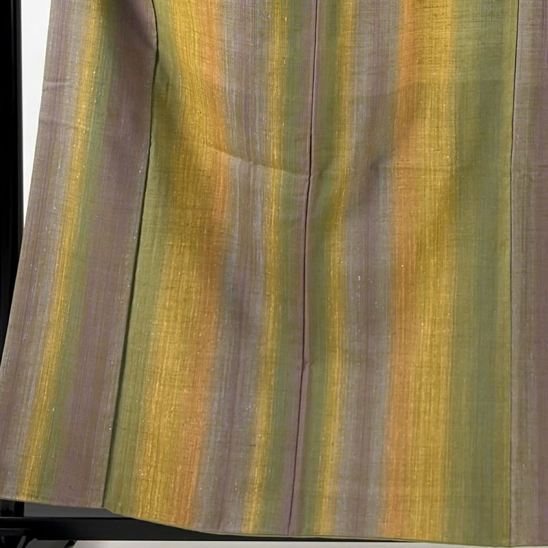 【着物ランク】秀品 【素材】正絹 【身丈】約159cm 【裄丈】約64cm 【袖丈】約48cm 【袖幅】約33.5cm 【前幅】約24cm 【後幅】約28.5cm 【サイズ】M 【着物仕立て】袷 【着用時期】10~5月 【状態ランク】ランクB 【着物着用シーン】気軽なパーティー、観劇、食事会、正月、気軽なお茶会、街着