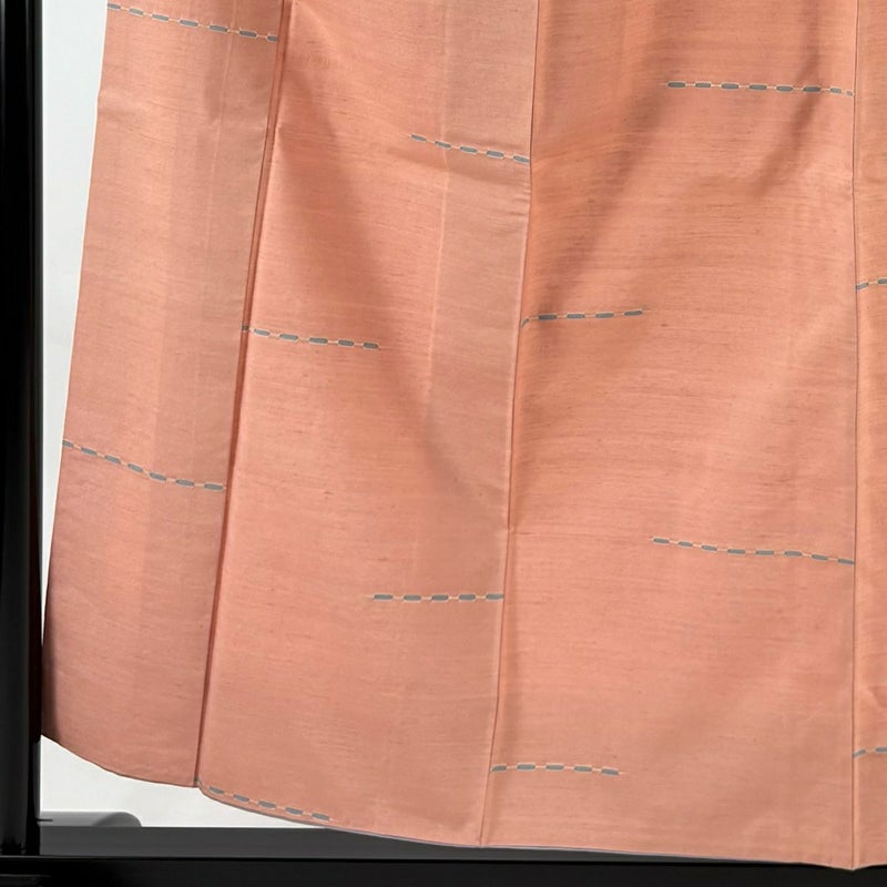 【紬】 赤系 サーモンピンク 秀品 B 約150cm~約159cm 裄丈63cm-64cm (S)size 袖丈48cm 4000-7980 二万以下