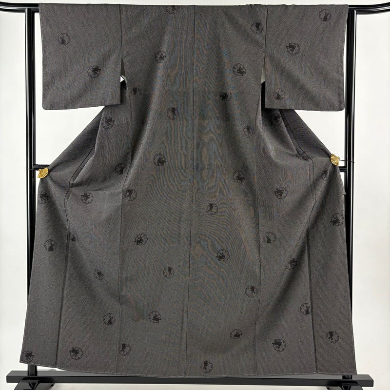 【紬】 灰色系 黒灰 秀品 A 約150cm~約159cm 裄丈62cm以下 (S)size 袖丈46cm以下 7990-9980 美品 二万以下