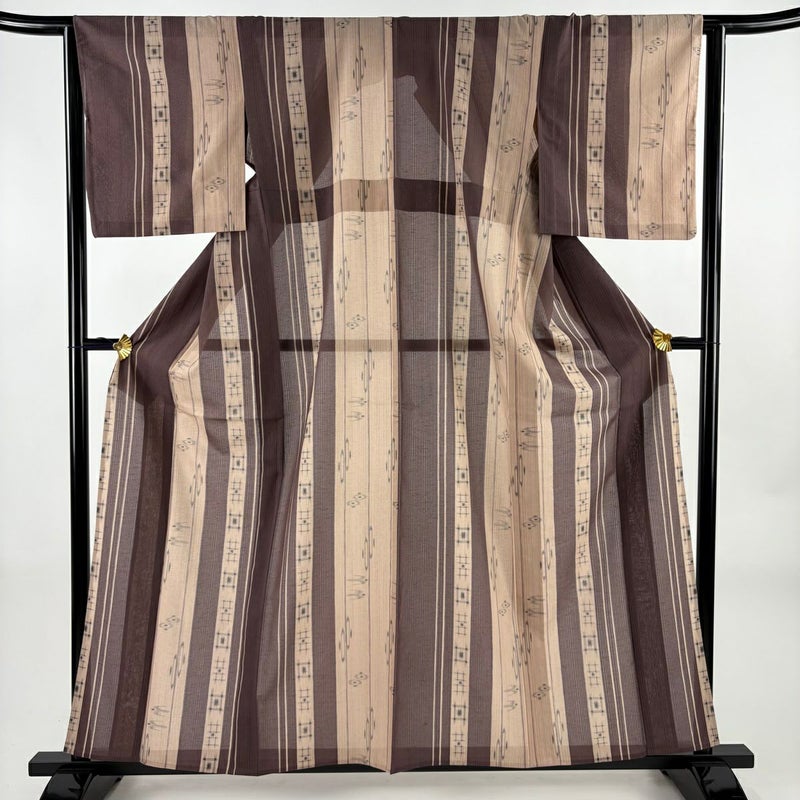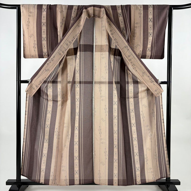 【着物ランク】秀品 【素材】正絹 【身丈】約158.5cm 【裄丈】約64cm 【袖丈】約47.5cm 【袖幅】約33cm 【前幅】約25.5cm 【後幅】約30.5cm 【サイズ】M 【着物仕立て】薄物 【着用時期】7~8月 【状態ランク】ランクB 【着物着用シーン】気軽なパーティー、観劇、食事会、正月、気軽なお茶会、街着