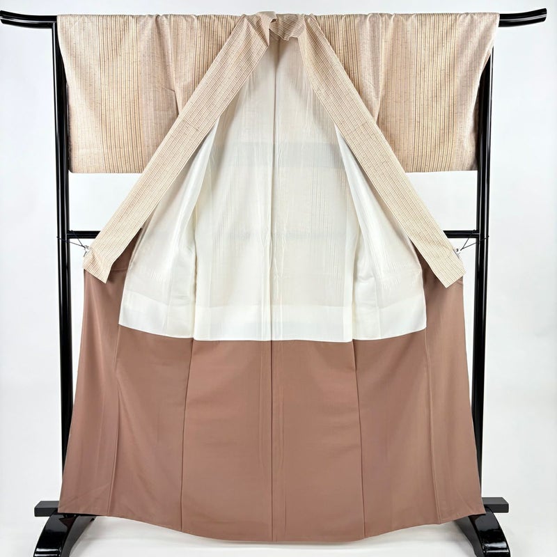 【紬】 茶系 薄茶色 名品 B 約160cm~約169cm 裄丈67cm-68cm (L)size 袖丈49cm 9990-29990 二万以下