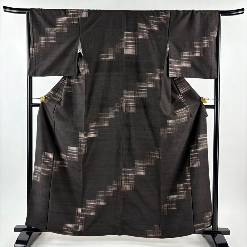 【紬】 茶系 焦茶色 秀品 A 約160cm~約169cm 裄丈66cm (M)size 袖丈49cm 7990-9980 美品 二万以下