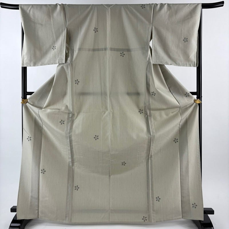 【着物ランク】秀品 【素材】正絹 【身丈】約171.5cm 【裄丈】約68.5cm 【袖丈】約49cm 【袖幅】約35cm 【前幅】約24cm 【後幅】約30.5cm 【サイズ】L 【着物仕立て】単衣 【着用時期】6/9月 【状態ランク】ランクA 【着物着用シーン】気軽なパーティー、観劇、食事会、正月、気軽なお茶会、街着