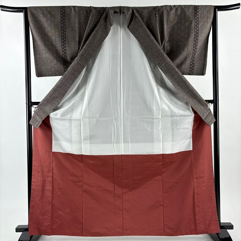 【紬】 茶系 焦茶色 秀品 A 約160cm~約169cm 裄丈65cm (M)size 袖丈49cm 7990-9980 美品 二万以下