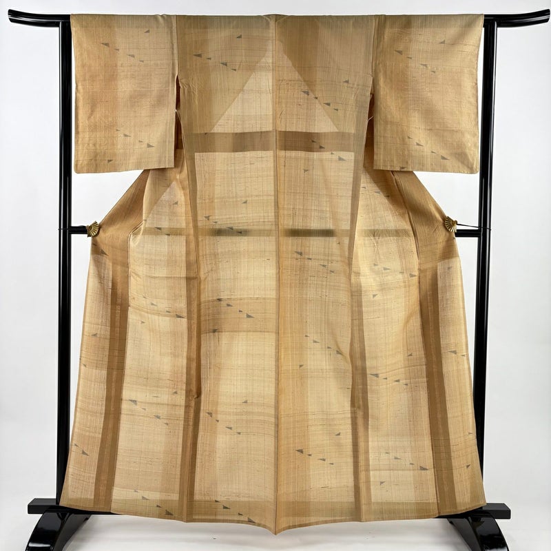 【着物ランク】秀品 【素材】正絹 【身丈】約162cm 【裄丈】約63cm 【袖丈】約51cm 【袖幅】約32cm 【前幅】約25cm 【後幅】約31cm 【サイズ】S 【着物仕立て】薄物 【着用時期】7~8月 【状態ランク】ランクC 【着物着用シーン】気軽なパーティー、観劇、食事会、正月、気軽なお茶会、街着