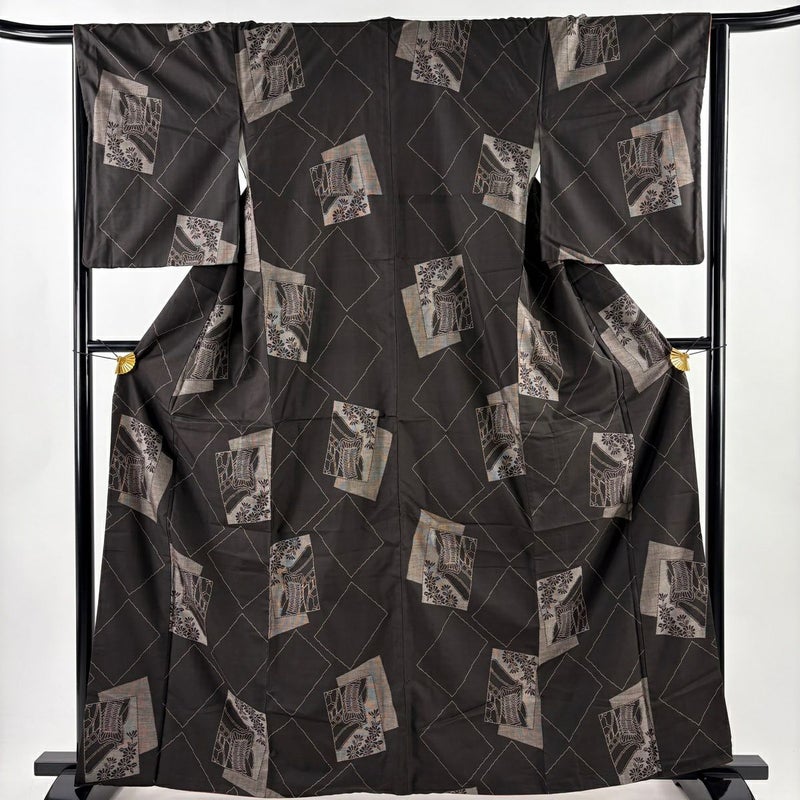 【紬】 茶系 焦茶色 名品 B 約160cm~約169cm 裄丈63cm-64cm (M)size 袖丈50cm-60cm 9990-29990 二万以下