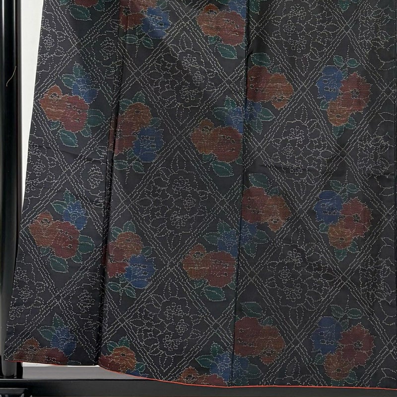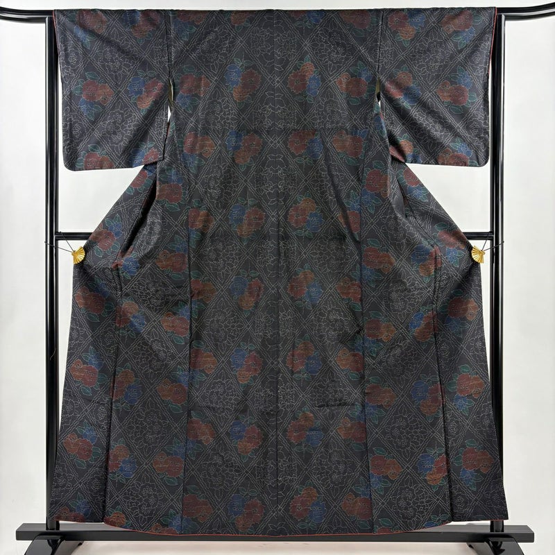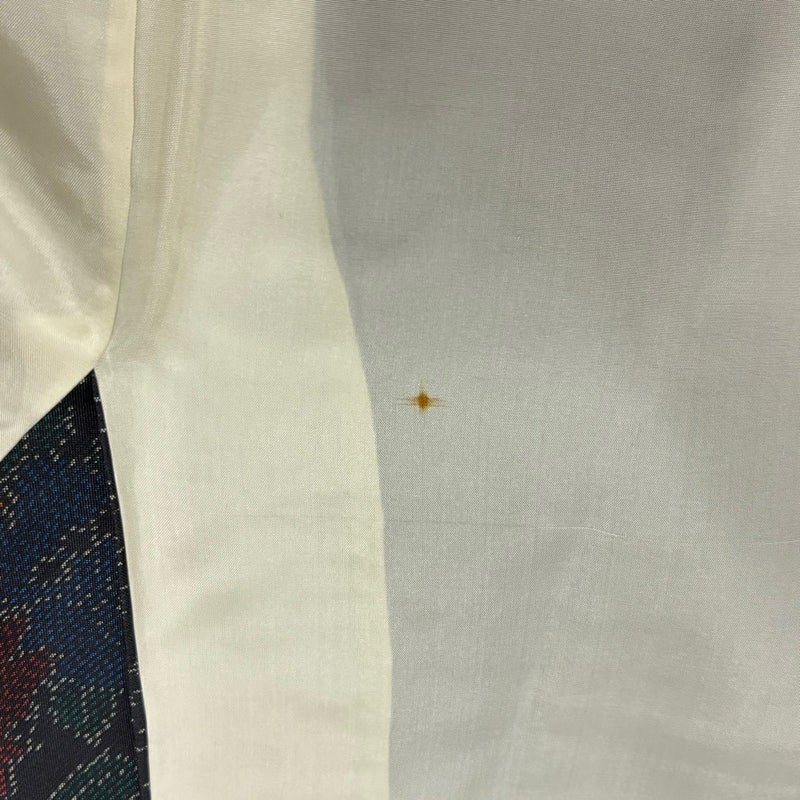 【着物ランク】優品 【素材】正絹 【身丈】約159.5cm 【裄丈】約64cm 【袖丈】約48cm 【袖幅】約32.5cm 【前幅】約24.5cm 【後幅】約28.5cm 【サイズ】M 【着物仕立て】袷 【着用時期】10~5月 【状態ランク】ランクB 【着物着用シーン】気軽なパーティー、観劇、食事会、正月、気軽なお茶会、街着