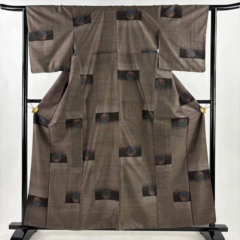 【紬】 茶系 焦茶色 秀品 A 約150cm~約159cm 裄丈63cm-64cm (S)size 袖丈49cm -3980 美品 二万以下