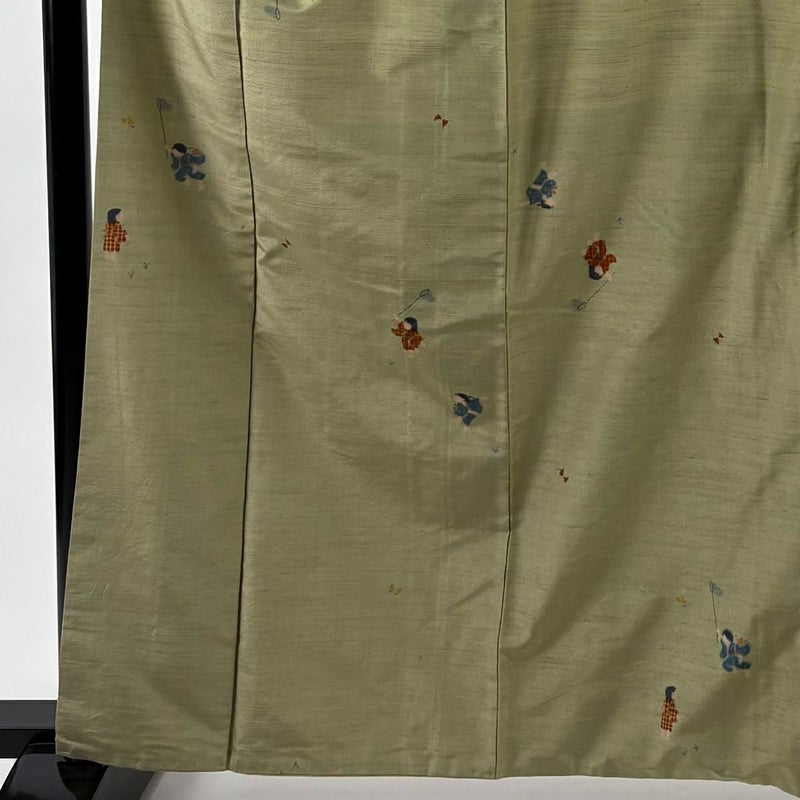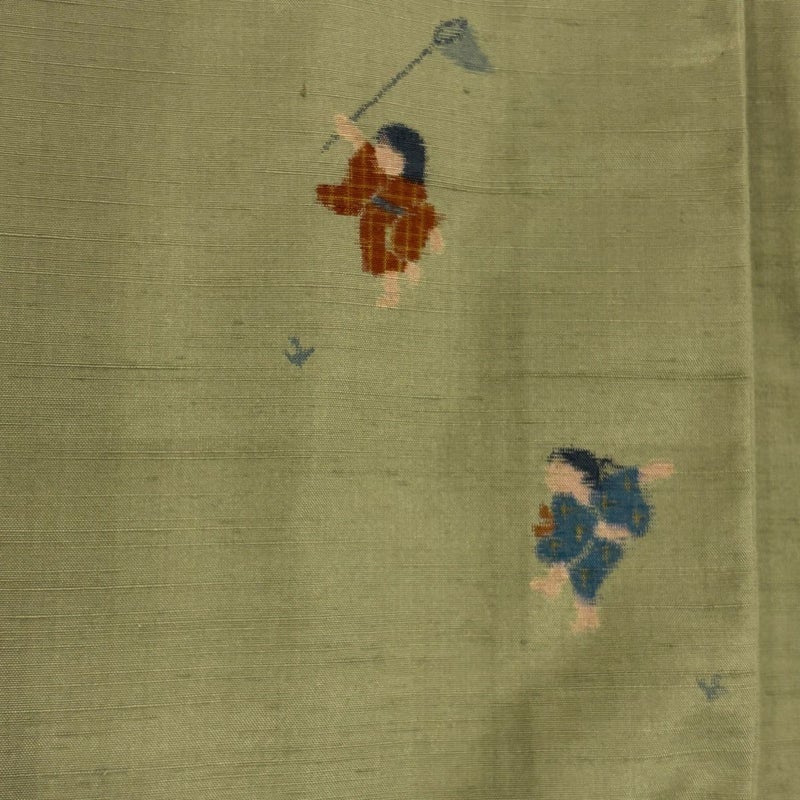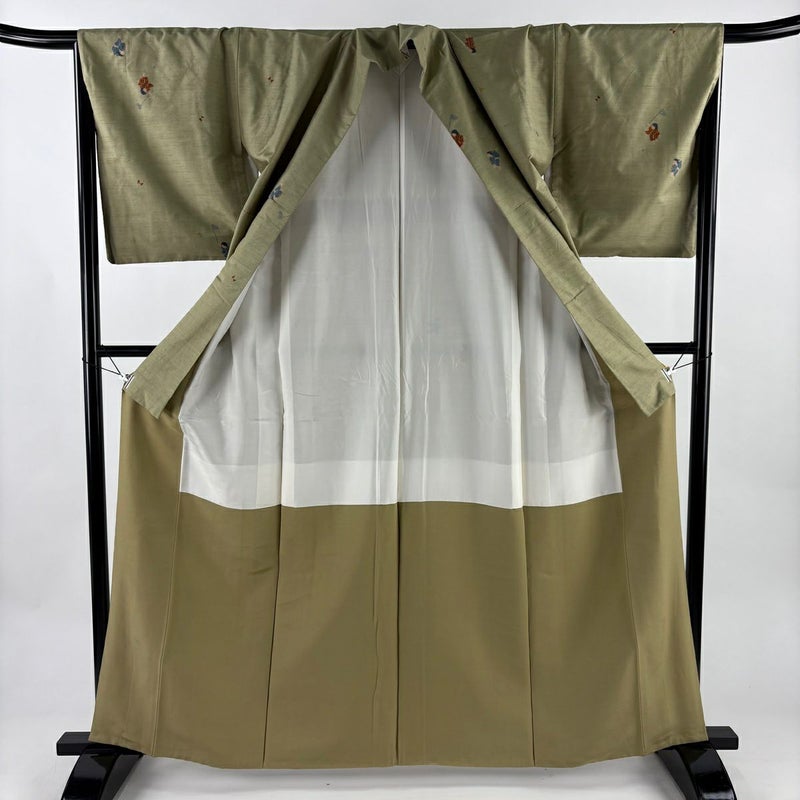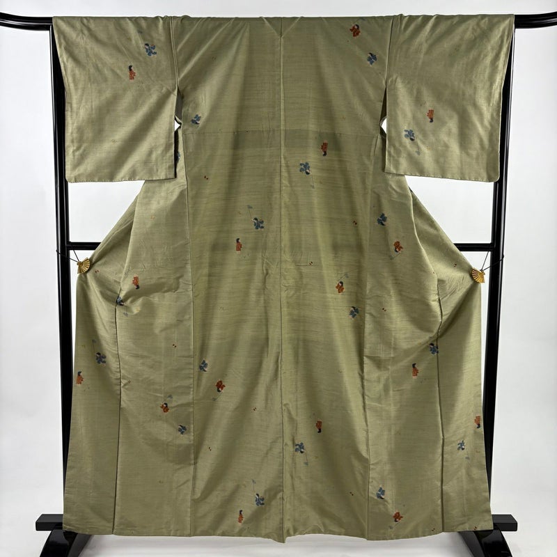 【紬】 緑系 よもぎ色 秀品 B 約160cm~約169cm 裄丈65cm (M)size 袖丈49cm 4000-7980 二万以下