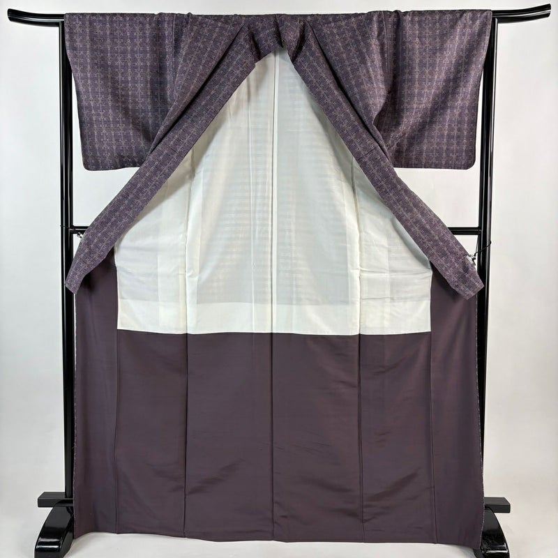 【紬】 紫系 紫 名品 B 約170cm~約179cm 裄丈65cm (M)size 袖丈48cm 9990-29990 二万以下