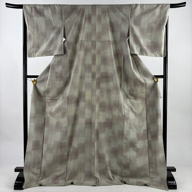 【紬】 灰色系 灰緑 名品 A 約170cm~約179cm 裄丈67cm-68cm (L)size 袖丈50cm-60cm 9990-29990 美品 二万以下