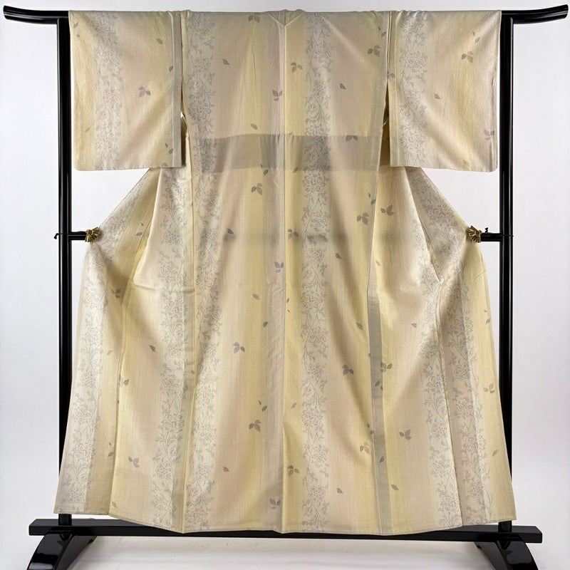 【着物ランク】逸品 【素材】正絹 【身丈】約158cm 【裄丈】約62cm 【袖丈】約48.5cm 【袖幅】約33cm 【前幅】約23cm 【後幅】約29.5cm 【サイズ】S 【着物仕立て】単衣 【着用時期】6/9月 【状態ランク】ランクA 【着物着用シーン】気軽なパーティー、観劇、食事会、正月、気軽なお茶会、街着