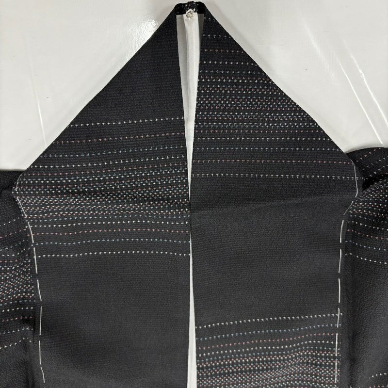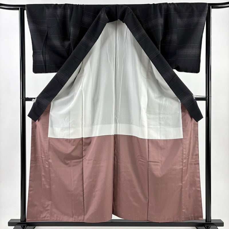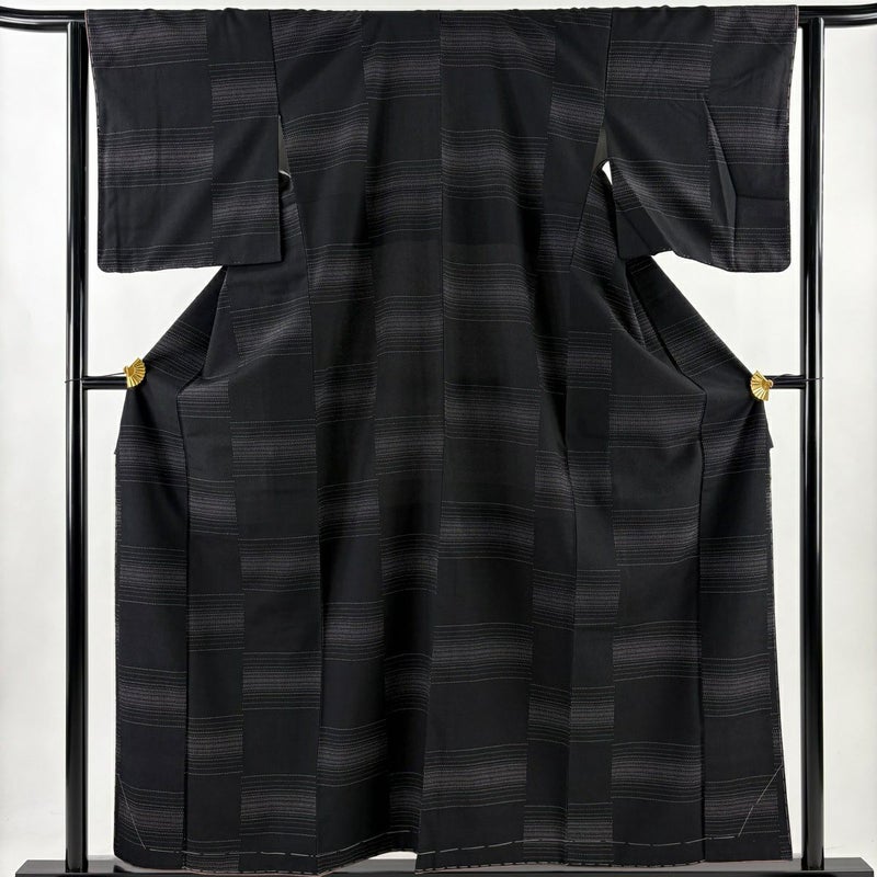 【紬】 黒系 黒 秀品 A 約150cm~約159cm 裄丈62cm以下 (S)size 袖丈49cm 7990-9980 美品 二万以下