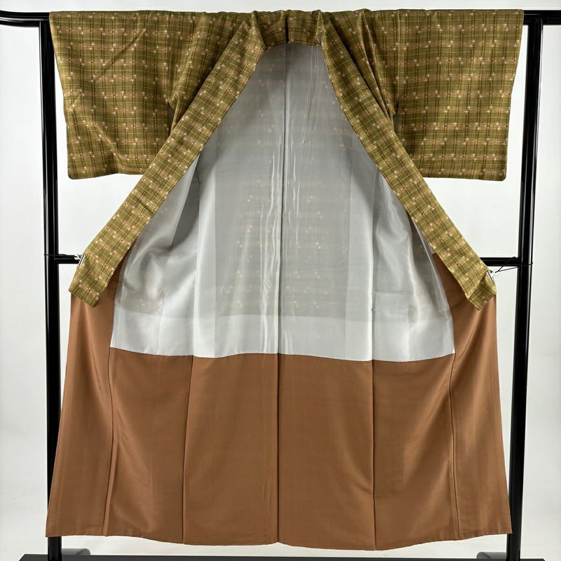【紬】 茶系 薄茶色 秀品 B 約150cm~約159cm 裄丈62cm以下 (S)size 袖丈46cm以下 -3980 二万以下