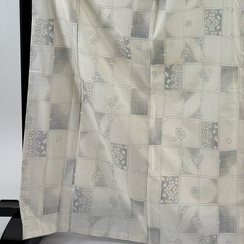 【紬】 白系 クリーム 名品 B 約160cm~約169cm 裄丈67cm-68cm (M)size 袖丈50cm-60cm 9990-29990 二万以下