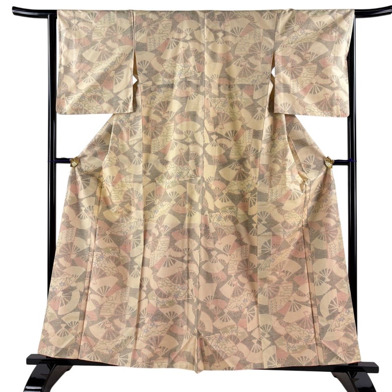 【着物ランク】優品 【素材】正絹 【身丈】約159cm 【裄丈】約64.5cm 【袖丈】約49cm 【袖幅】約33.5cm 【前幅】約26cm 【後幅】約30cm 【サイズ】M 【着物仕立て】袷 【着用時期】10~5月 【状態ランク】ランクA 【着物着用シーン】気軽なパーティー、観劇、食事会、正月、気軽なお茶会、街着
