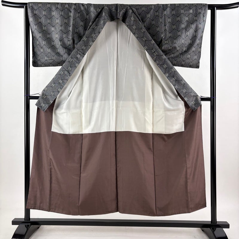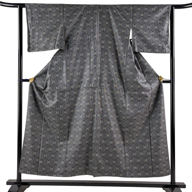 【紬】 灰色系 黒灰 優品 A 約150cm~約159cm 裄丈63cm-64cm (S)size 袖丈46cm以下 4000-7980 美品 二万以下