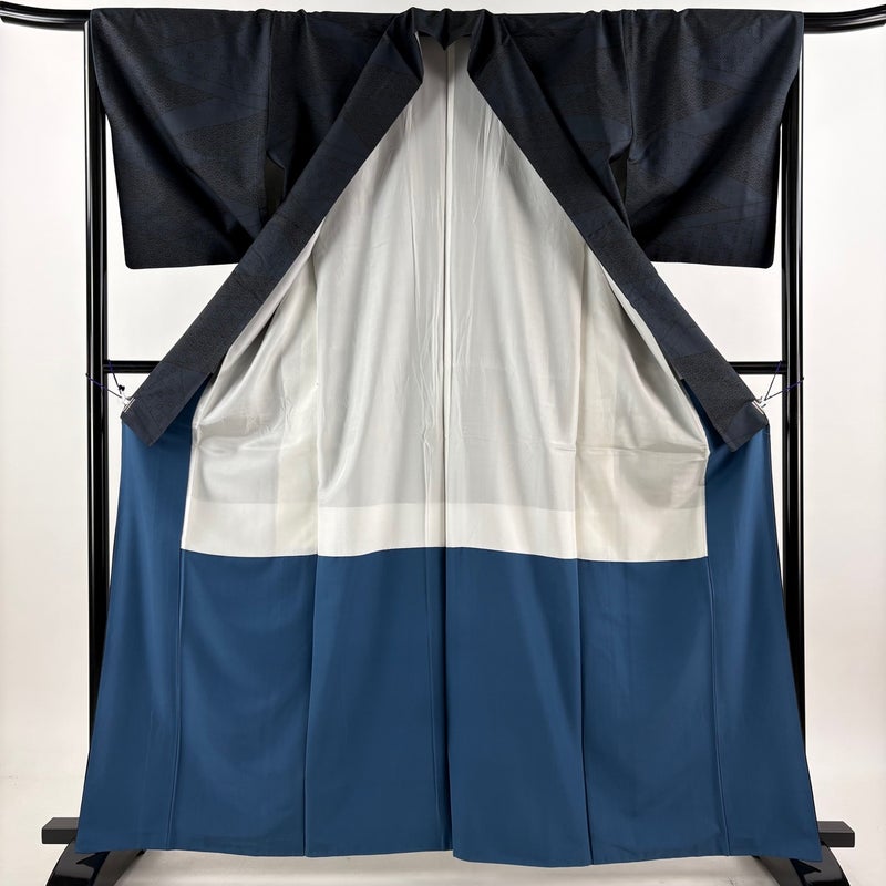 【紬】 青系 濃紺 優品 B 約160cm~約169cm 裄丈65cm (M)size 袖丈49cm -3980 二万以下