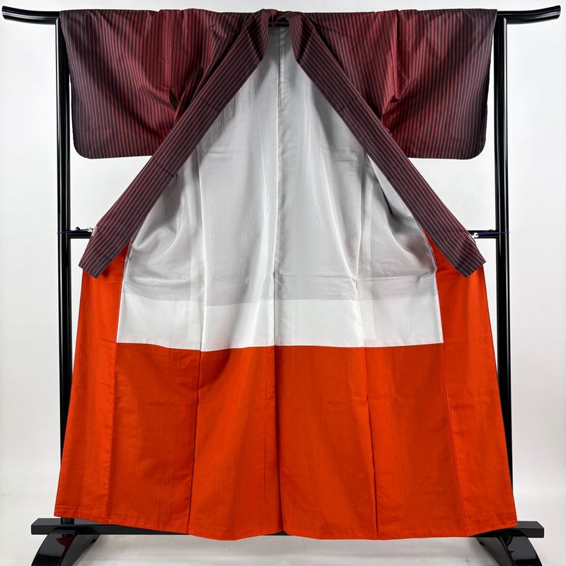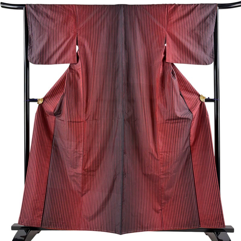 【紬】 赤系 赤黒 優品 B 約160cm~約169cm 裄丈65cm (M)size 袖丈46cm以下 -3980 二万以下