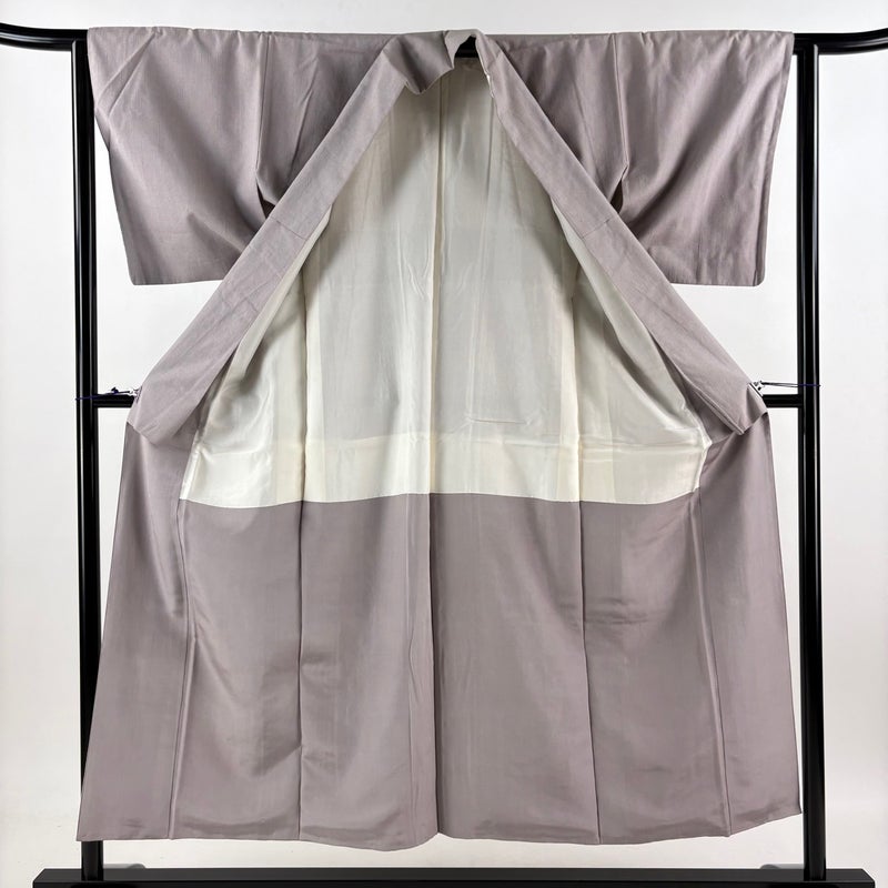 【紬】 灰色系 灰紫 優品 B 約150cm~約159cm 裄丈63cm-64cm (S)size 袖丈47cm -3980 二万以下
