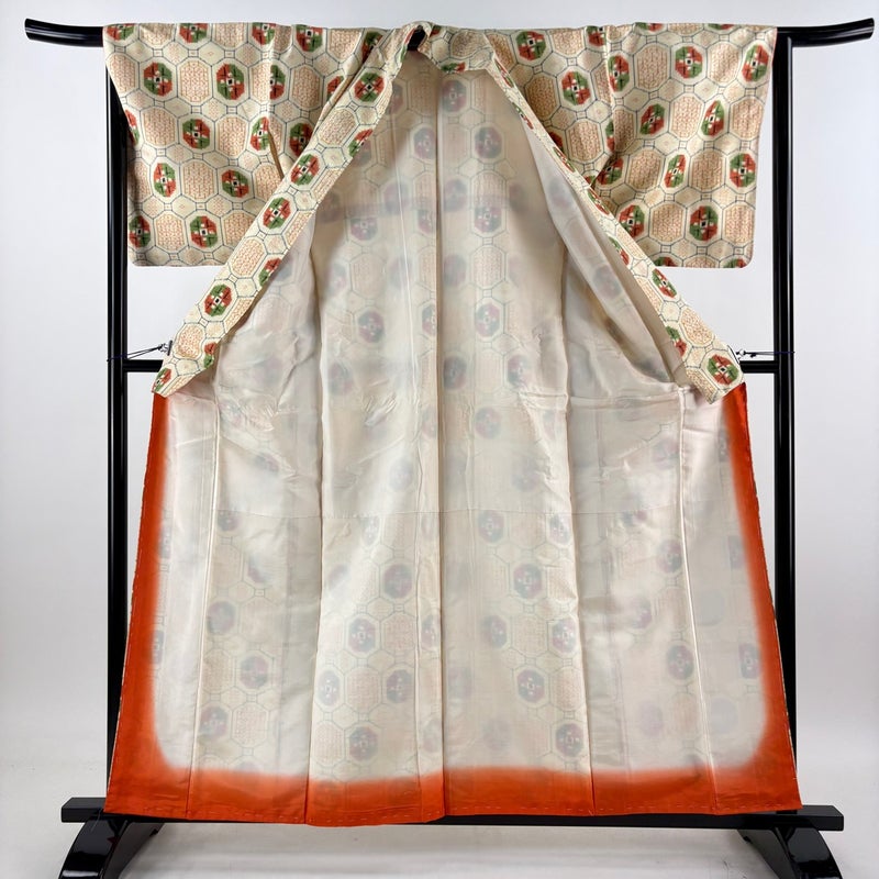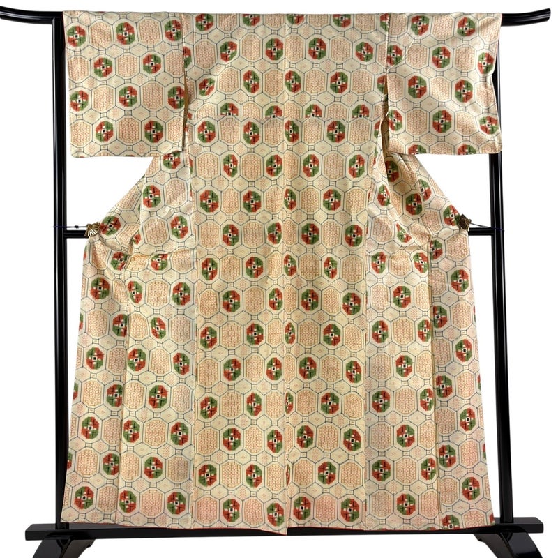 【着物ランク】優品 【素材】正絹 【身丈】約159cm 【裄丈】約65.5cm 【袖丈】約48.5cm 【袖幅】約34cm 【前幅】約23cm 【後幅】約29cm 【サイズ】M 【着物仕立て】袷 【着用時期】10~5月 【状態ランク】ランクA 【着物着用シーン】気軽なパーティー、観劇、食事会、正月、気軽なお茶会、街着