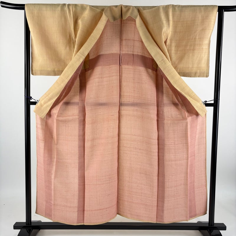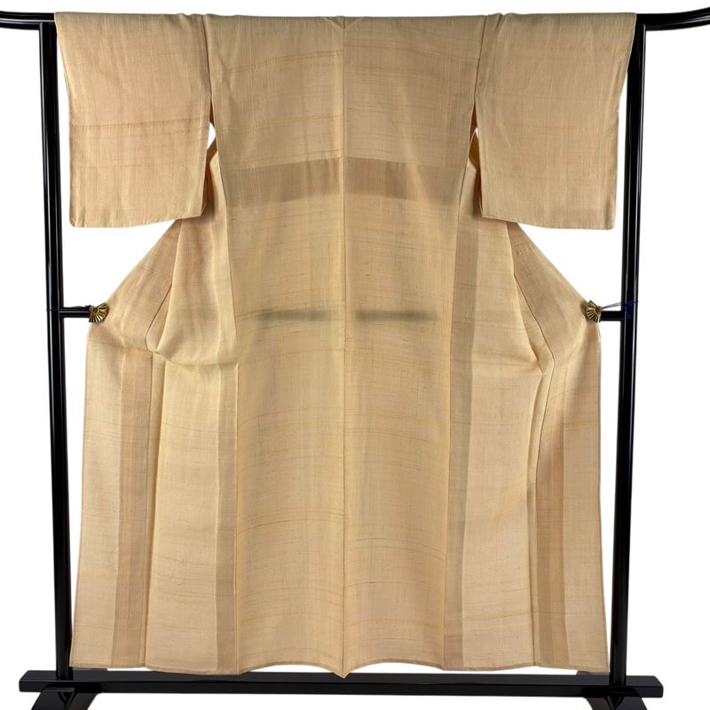 【紬】 白系 ベージュ 名品 A 約150cm~約159cm 裄丈63cm-64cm (M)size 袖丈48cm 9990-29990 美品 五万以下