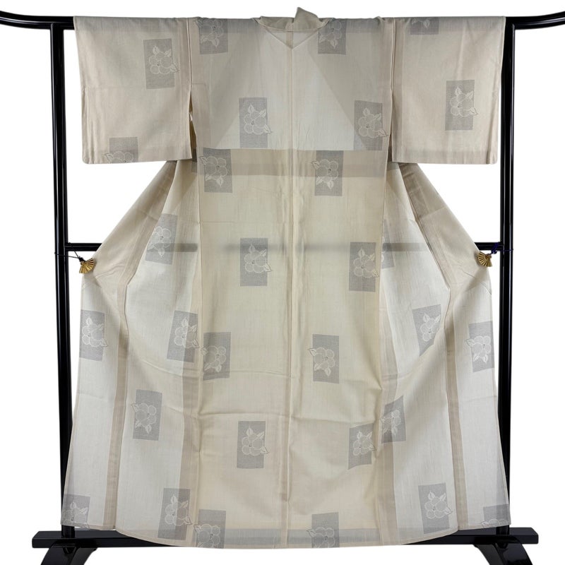 【着物ランク】名品 【素材】正絹 【身丈】約159.5cm 【裄丈】約62.5cm 【袖丈】約44cm 【袖幅】約32.5cm 【前幅】約25cm 【後幅】約28.5cm 【サイズ】S 【着物仕立て】薄物 【着用時期】7~8月 【状態ランク】ランクC 【着物着用シーン】気軽なパーティー、観劇、食事会、正月、気軽なお茶会、街着