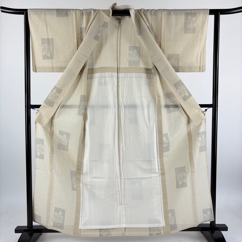 【紬】 白系 ベージュ 名品 C 約150cm~約159cm 裄丈62cm以下 (S)size 袖丈46cm以下 9990-29990 二万以下