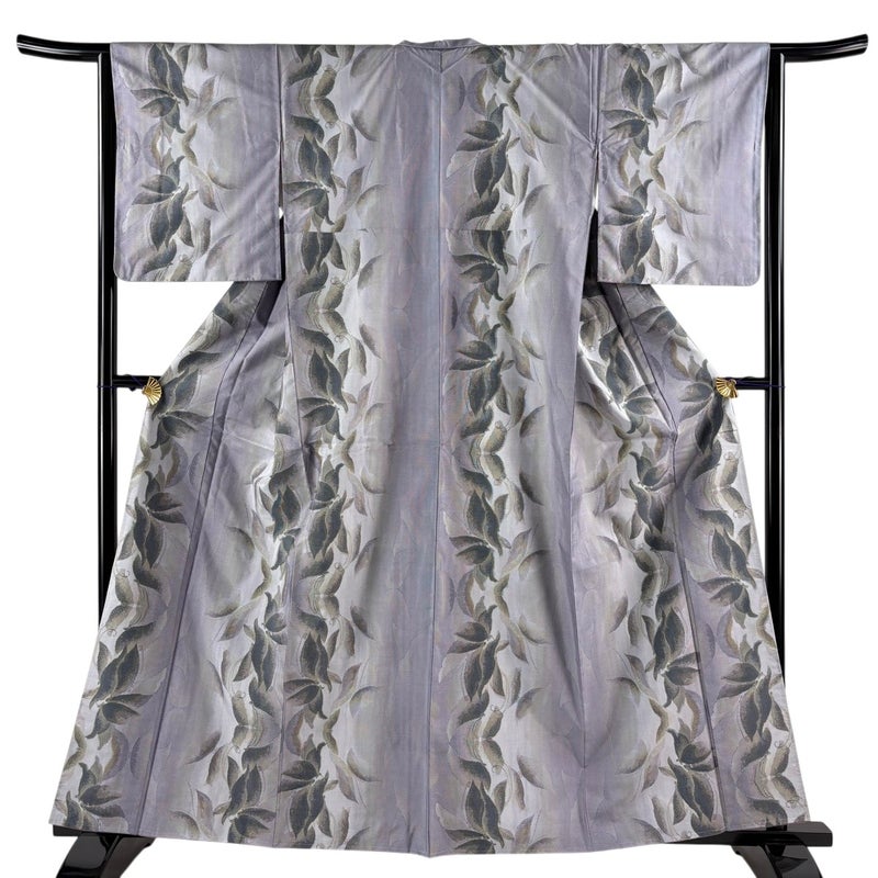 【着物ランク】名品 【素材】正絹 【身丈】約159.5cm 【裄丈】約64cm 【袖丈】約48.5cm 【袖幅】約32cm 【前幅】約26.5cm 【後幅】約31.5cm 【サイズ】M 【着物仕立て】袷 【着用時期】10~5月 【状態ランク】ランクA 【着物着用シーン】気軽なパーティー、観劇、食事会、正月、気軽なお茶会、街着