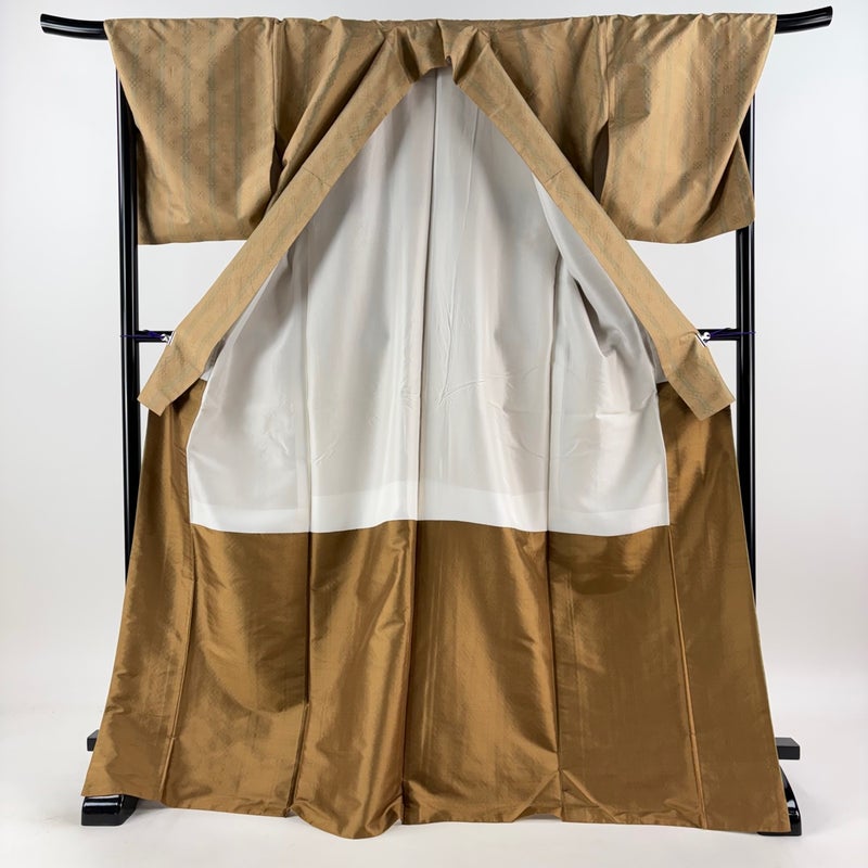 【着物ランク】逸品 【素材】正絹 【身丈】約171.5cm 【裄丈】約70.5cm 【袖丈】約48cm 【袖幅】約36cm 【前幅】約28cm 【後幅】約33cm 【サイズ】L 【着物仕立て】袷 【着用時期】10~5月 【状態ランク】ランクB 【着物着用シーン】気軽なパーティー、観劇、食事会、正月、気軽なお茶会、街着