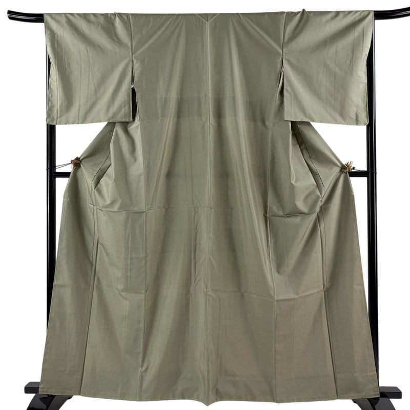 【紬】 緑系 よもぎ色 秀品 A 約160cm~約169cm 裄丈67cm-68cm (M)size 袖丈48cm 7990-9980 美品 二万以下
