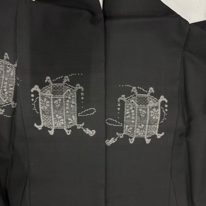 【紬】 黒系 黒 秀品 A 約150cm~約159cm 裄丈65cm (M)size 袖丈48cm 7990-9980 美品 二万以下