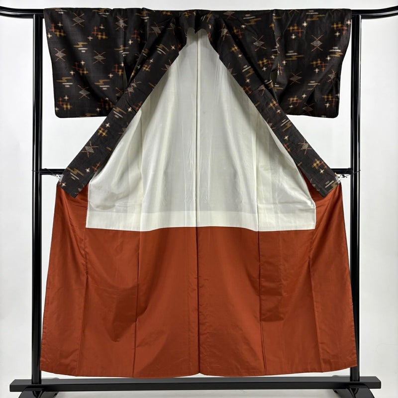 【紬】 茶系 焦茶色 名品 C 約150cm~約159cm 裄丈62cm以下 (S)size 袖丈46cm以下 9990-29990 二万以下