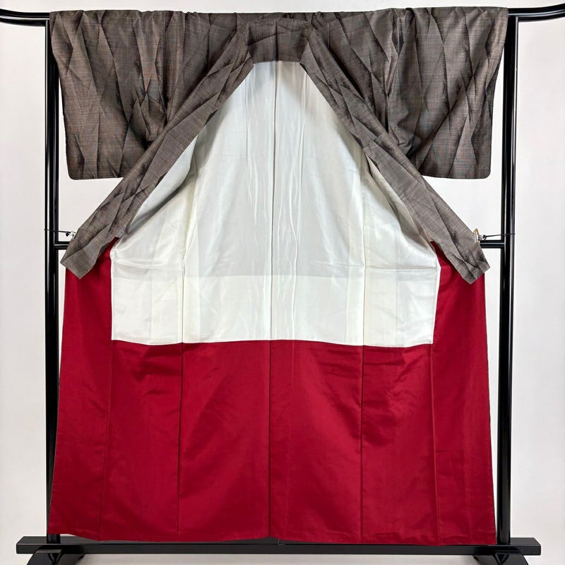 【紬】 茶系 焦茶色 秀品 A 約150cm~約159cm 裄丈66cm (M)size 袖丈49cm 7990-9980 美品 二万以下