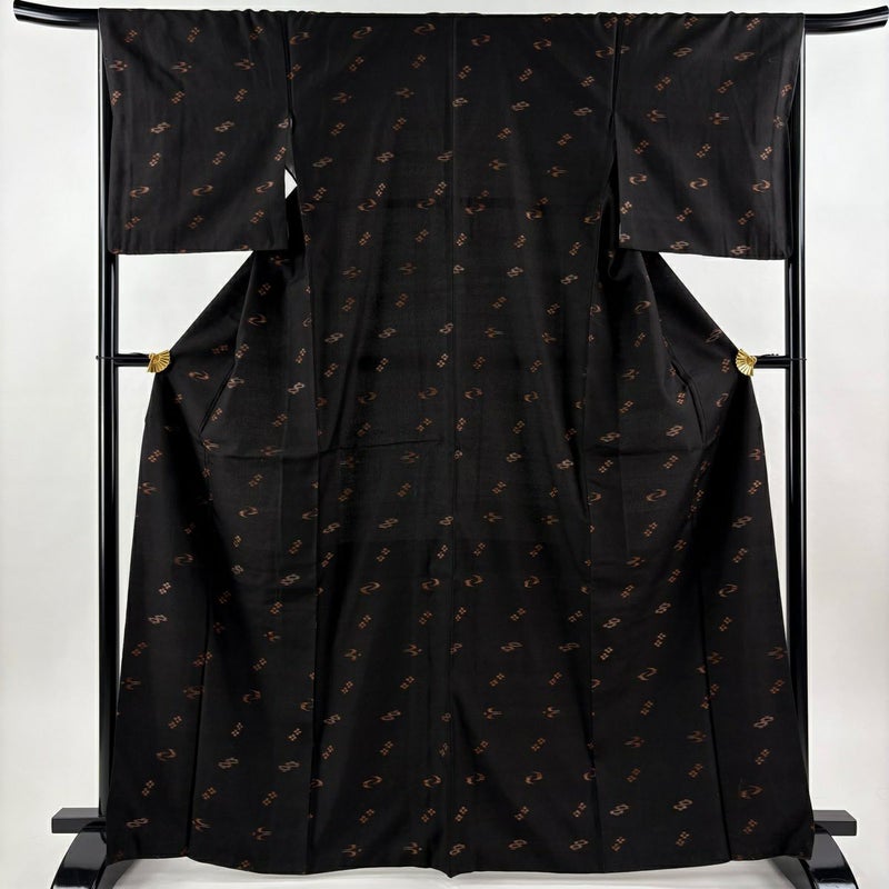 【紬】 茶系 焦茶色 逸品 B 約160cm~約169cm 裄丈66cm (M)size 袖丈49cm 30000- 五万以上