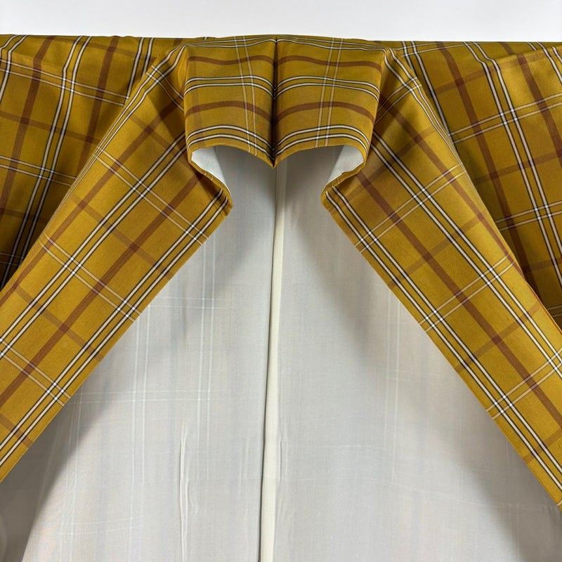 【紬】 黄色系 山吹茶色 逸品 B 約160cm~約169cm 裄丈65cm (M)size 袖丈49cm 30000- 五万以下