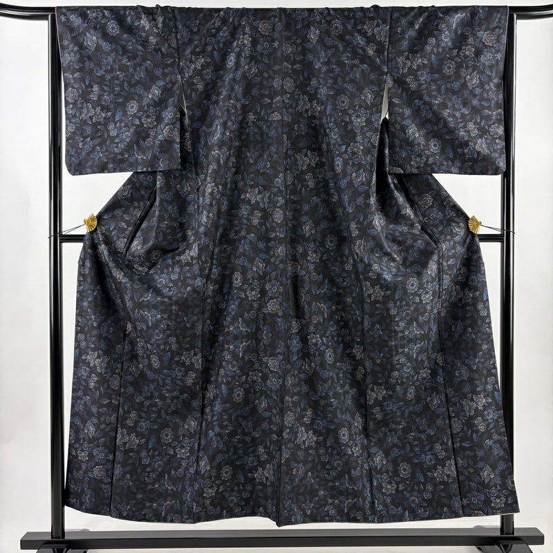 【紬】 黒系 黒 秀品 B 約150cm~約159cm 裄丈66cm (M)size 袖丈49cm 4000-7980 二万以下