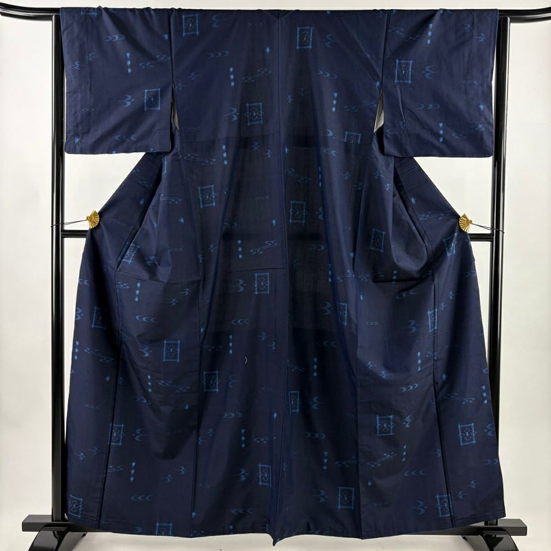 【紬】 青系 紺色 秀品 B 約160cm~約169cm 裄丈63cm-64cm (M)size 袖丈46cm以下 4000-7980 二万以下