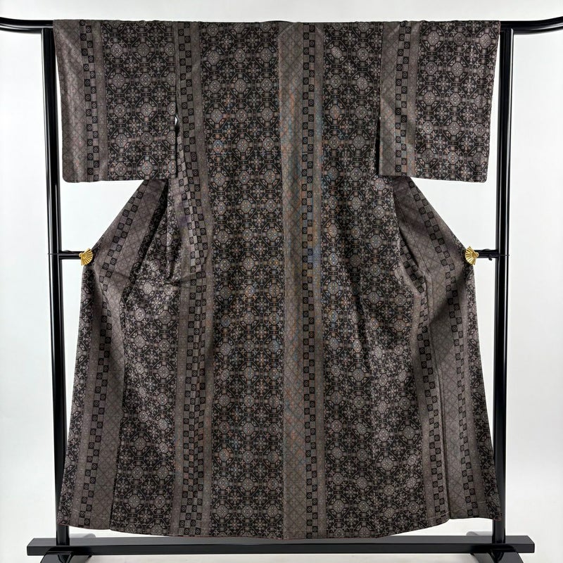 普段着やおしゃれ着として人気の紬でございます。 元々は日常着として着用していたので、その土地の風土に合った様々な種類がある素敵な一品です。 ※身丈・裄丈の縫込みの長さは測っておりません。 リユース品としては目立った染み傷なく、状態の良いお品でございます。 ※なお、厳しく商品の状態確認を行っておりますが、記載の汚れ以外にも見落とし箇所がある可能性がある旨ご了承いただけますと幸いです。 沢山の商品の中からご覧いただき誠にありがとうございます。