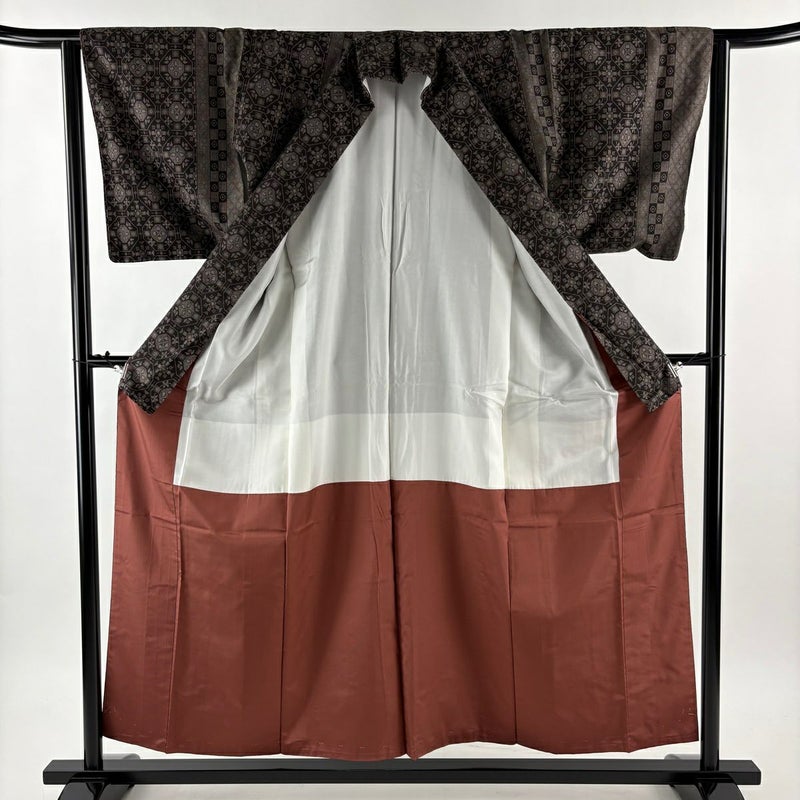 【紬】 茶系 焦茶色 秀品 A 約150cm~約159cm 裄丈63cm-64cm (S)size 袖丈47cm 7990-9980 美品 二万以下